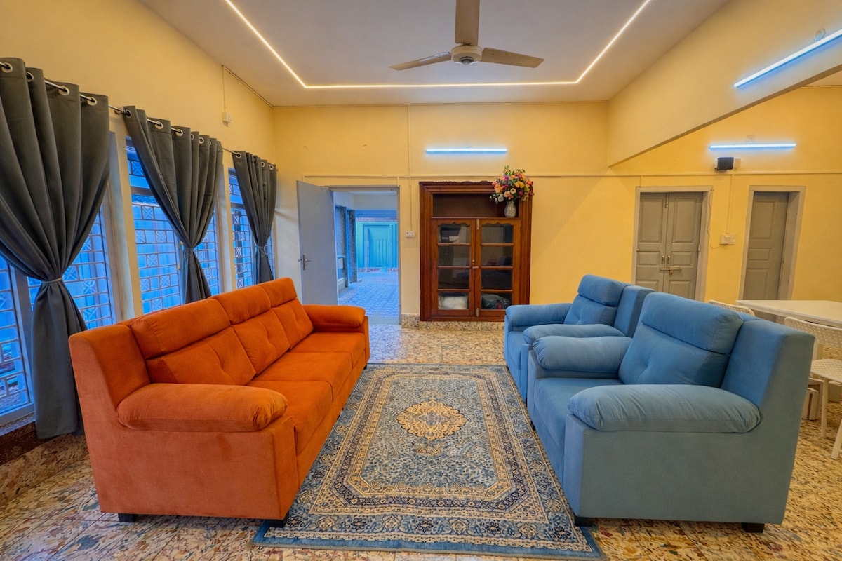 A grand 8 BHK bungalow in Patna, designed for comfort and calm. Enjoy wide, airy rooms, a quiet residential setting, and quick access to the airport for effortless arrivals and departures. The property features a 1000 sq ft spacious hall suitable for events, a rooftop on the second floor, and terrace access for open-air relaxation. With the flexibility to book separate rooms or apartments as per your needs. Ideal for families, group stays, and extended visits with a truly homely touch.