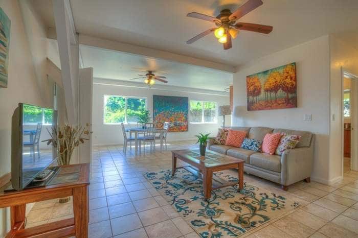 Casa Hilo Paukaa. Soggiorno con aria condizionata e camera da letto principale