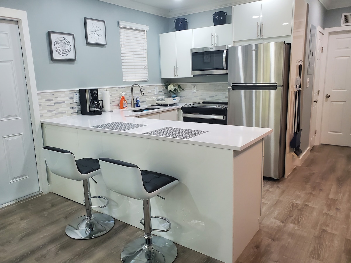 Questo è un rifugio moderno di metà secolo recentemente ristrutturato nel cuore di Pembroke Pines. Questo confortevole monolocale è ideale per soggiorni a breve termine e dispone di una cucina completa, un bagno splendidamente ristrutturato e una spaziosa zona giorno. Rilassati in un comodo letto matrimoniale e in un futon che si apre su un letto matrimoniale. Include caffè in omaggio, articoli da toeletta, Wi-Fi veloce e una smart TV con app di streaming. Immergiti nel comfort e nello stile di questo spazio invitante nella vivace Pembroke Pines.