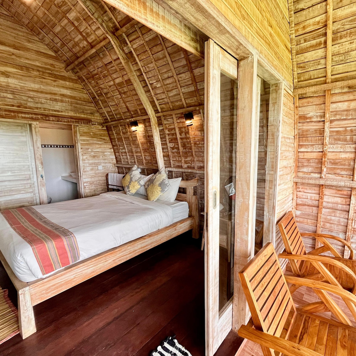 Vivi il lusso nella nostra casa sull'albero balinese, immersa nella campagna verdeggiante. Questa baita di lusso, che assomiglia a una minicasa, vanta un design impeccabile che si fonde perfettamente con la natura. Svegliati con una vista mozzafiato sulle montagne maestose, direttamente dal tuo letto. Rilassati nell'esclusiva vasca da bagno all'aperto, circondata dai tranquilli sussurri della giungla. Festeggia con deliziosi barbecue sul terrazzo privato, sullo sfondo panoramico. Immergiti nell'essenza di Bali, dove il lusso incontra la natura selvaggia.