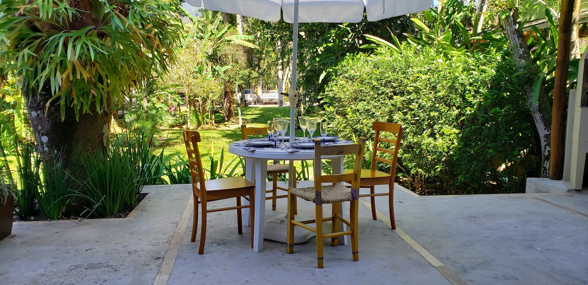Goditi Ilhabela nel nostro accogliente chalet, perfetto per coppie e famiglie in cerca di comfort e tranquillità. Con una posizione privilegiata nella regione centrale, offriamo un facile accesso a piste ciclabili, trasporti, bar e ristoranti. Dispone di ingresso indipendente, cucina privata completa e una piacevole area esterna con parcheggio. Quartiere pianeggiante, tranquillo e sicuro, a soli 200 metri dalla spiaggia di Itaguassu, a 5 minuti a piedi dal centro di Perequê e a 10 minuti di auto dalla Vila.