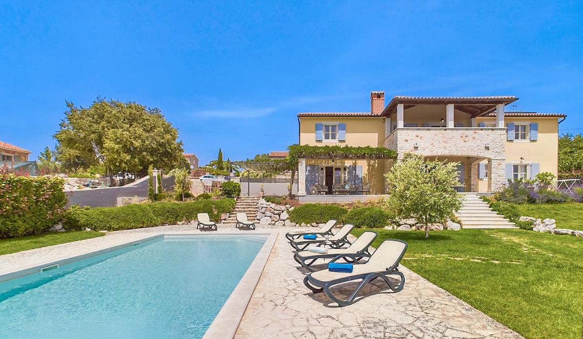 Stylish villa near Rovinj with picture worthy pool, sunk in hot tub, sauna. Wake up to lush, panoramic valley views. Couples and family-friendly, a short drive to adventure park, Brijuni National Park, dinopark, medieval towns & local cuisine. It is a true green escape for anyone looking to get back to nature with all the comfort of modern living. Fully equipped for cooking and entertainment in 2600 m2 of garden (football, speed ball, badminton & pool fun) for your kids and loved ones to enjoy.