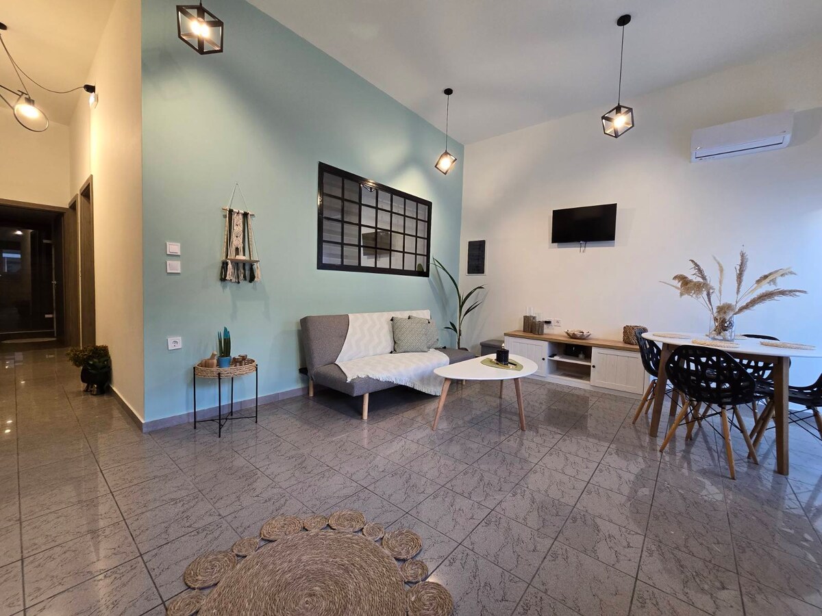 Posizione ideale - Vicino alla spiaggia, ai negozi e ai ristoranti locali, all'aeroporto e alla città di Rodi Perfetto per famiglie, coppie, viaggiatori singoli o lavoratori a distanza. Questo nuovissimo appartamento, elegante e completamente attrezzato, offre la combinazione perfetta di comfort, comodità e posizione. Che tu sia qui per una vacanza al mare, per avventure sull'isola o semplicemente per rilassarti, non vediamo l'ora di darti il benvenuto!