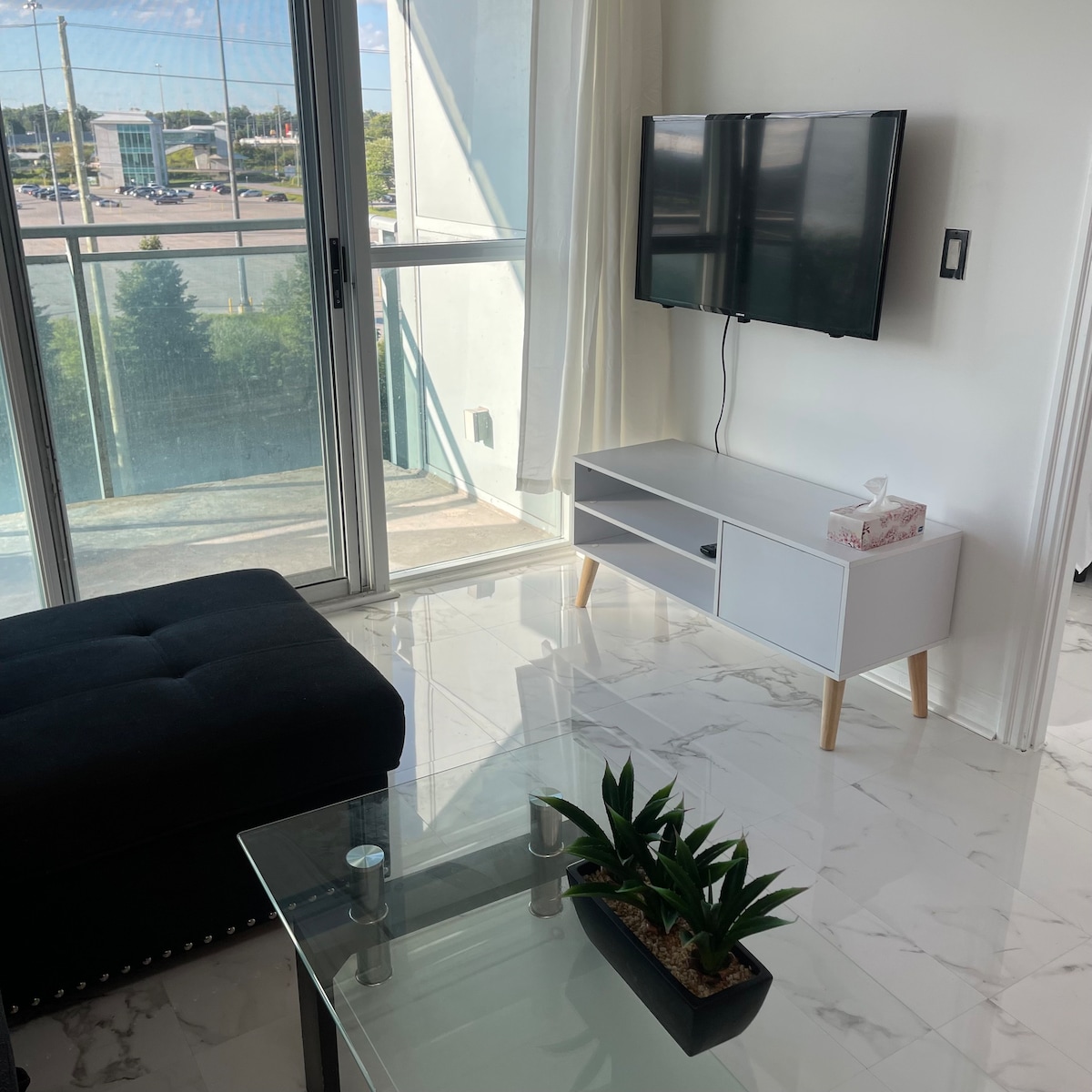 Goditi il soggiorno in questa unità con una camera da letto. Può ospitare da 2 a 4 persone con il divano letto. Soggiorno a breve o lungo termine con cucina completa e lavanderia con bagno interno. Parcheggio disponibile su richiesta. Central a/c e wifi sono dotati di soggiorno. Goditi anche un po' di tranquillità sul balcone. La posizione centrale a soli 2 minuti dalla 401 e Whitby go rende un viaggio al centro di Toronto un gioco da ragazzi. A pochi passi da negozi di alimentari e ristoranti e vicino all'intrattenimento. E soprattutto a 2 minuti a piedi per il Lago Ontario