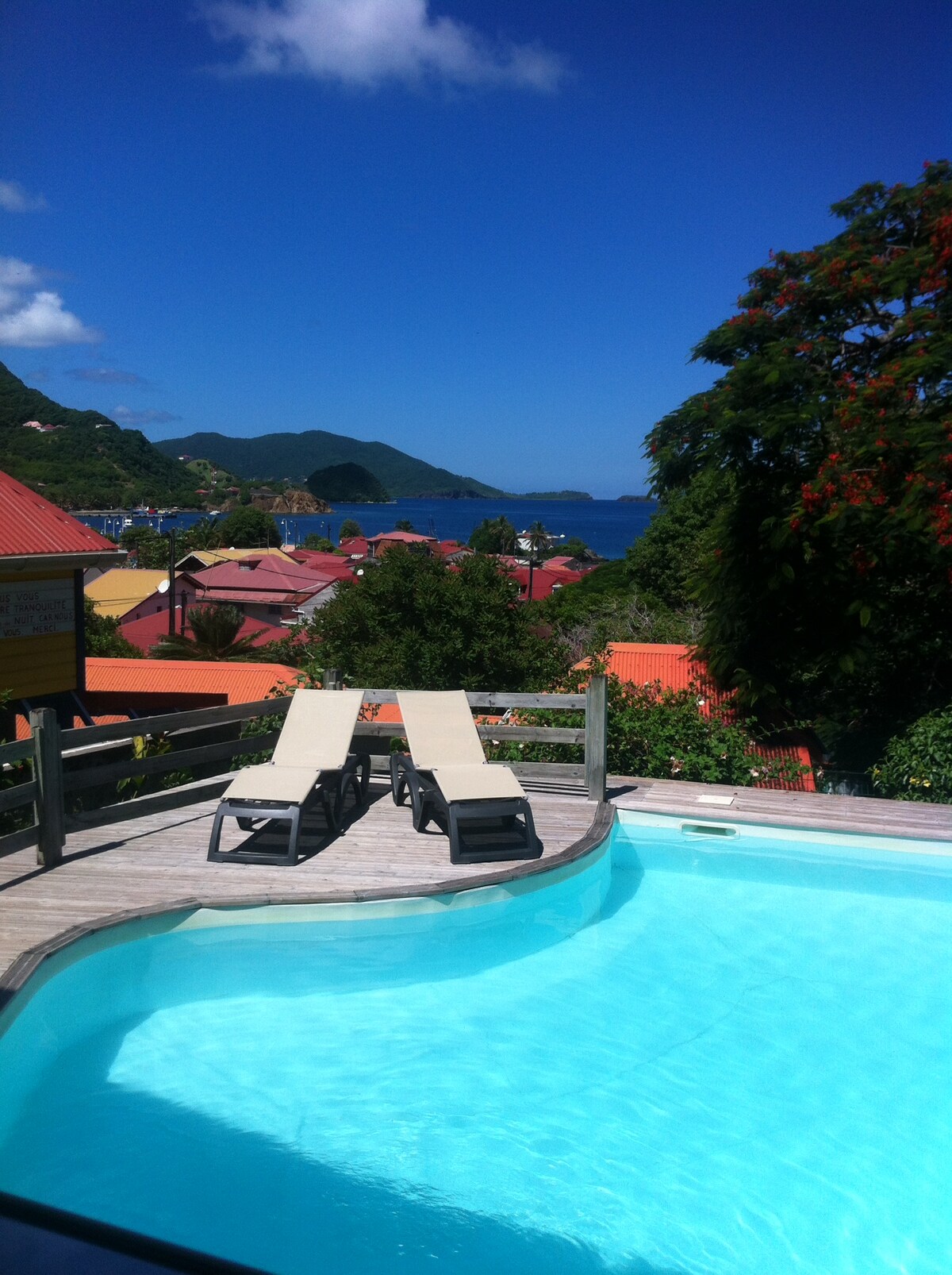 Affascinante villetta con piscina privata vicino al borgo di Terre de Haut (10 minuti a piedi dal molo e 3 minuti dalla spiaggia) Villa completamente attrezzata: Piscina con reti di protezione per bambini, cisterna in caso di interruzione dell'acqua, 2 camere da letto climatizzate + zanzariere, cucina super attrezzata, cassaforte, TV (canali TNT) con chiavetta USB e Netflix (portate i vostri codici), biancheria per la casa, teli mare ecc... Internet & wifi sono disponibili a Ti Corail.