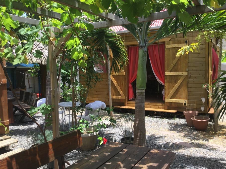 Bungalow di 70 M2 , Situato al piano terra con il suo giardino annesso . Camera da letto, cucina e soggiorno si affacciano sulla la terrazza che domina la baia delle sante e un giardino tropicale . L'alloggio è a 4 minuti a piedi dal centro del paese, da due spiagge, da ristoranti e da un centro immersioni, e tuttavia in una zona tranquilla. Godetevi il comfort, la vista magica e la tranquillità. Questo alloggio a tariffe interessanti non ha accesso alla piscina presente nella parte superiore della proprietà.