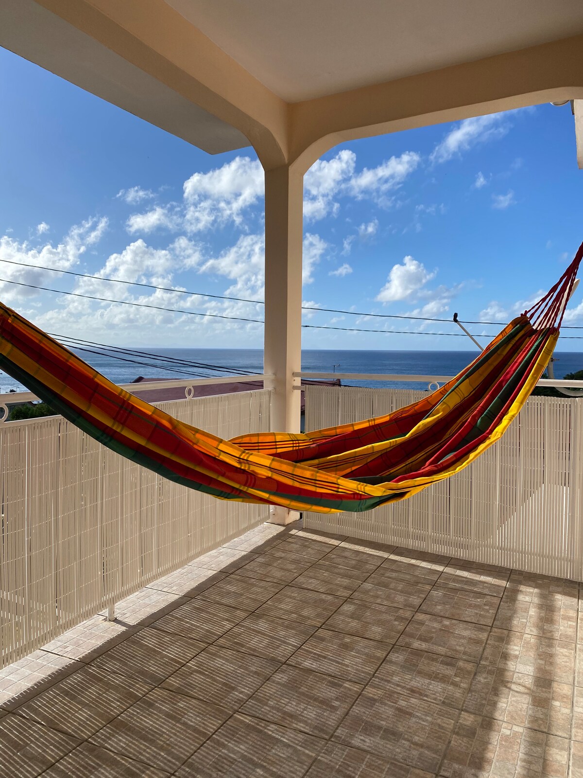 in Martinica nel comune di Les Anses d'Arlet, in mezzo a un giardino dai 1000 colori,🌺 casa completa in affitto stagionale.4/6 persone. due camere da letto con aria condizionata, bagno con doccia e wc, soggiorno con divano letto, soggiorno cucina attrezzata, terrazza coperta, lavanderia con lavatrice. vista mare Caraibi e tramonto. piccolo porto di pesca a 200 m. ristorante e spiaggia a 500 m. tranquillo e silenzioso trascorrerete una buona notte , parcheggio privato di facile accesso