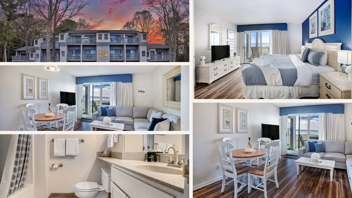 🌊 Vita sul mare: sali direttamente sulla sabbia o rilassati con ampie viste sulla baia dal tuo balcone privato. 🚶♂️ A 2 minuti a piedi dal sentiero TART, ideale per andare in bicicletta, fare jogging o passeggiate panoramiche. 🏙️ 9 minuti di auto dal centro: goditi le cantine, i birrifici, i negozi e i ristoranti di Traverse City. 🛋️ Comfort accogliente per 5 persone: letto king-size, divano letto queen-size con materasso Airdream e letto pieghevole. ☀️ Divertimento all'aperto tutto l'anno: accesso alla spiaggia sabbiosa, piscina stagionale e vasca idromassaggio, oltre a viste epiche sull'alba e sul tramonto.