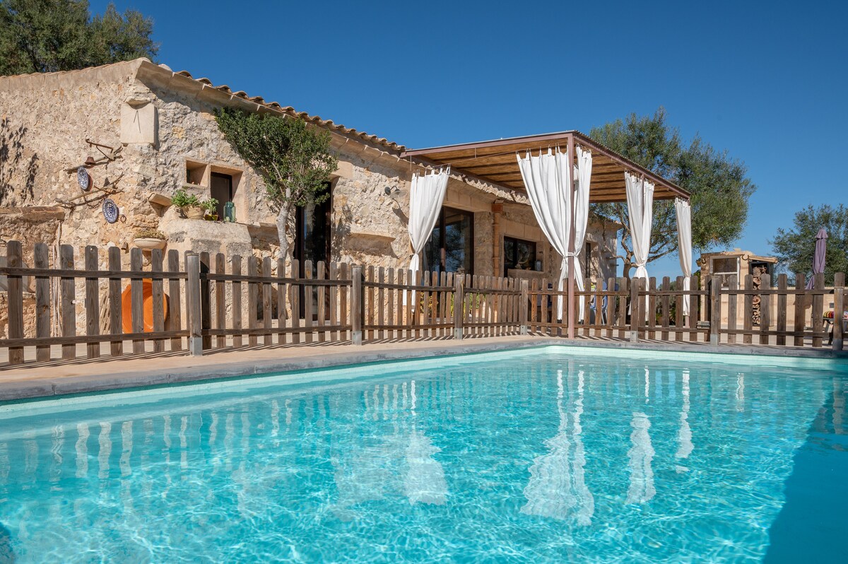 gode di una magica notte stellata e dell'energia di un sole bollente in un ambiente idilliaco e tipicamente maiorchino e nello stesso tempo la vicinanza al mare , a soli 8 km dalla casa tortuosa strade rurali per trovare bellissime calette e lunghe spiagge di sabbia bianca