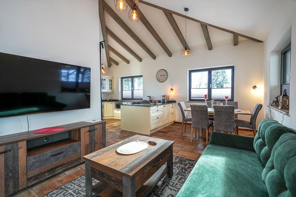Grande appartamento con circa 157 m² di spazio abitabile distribuito su 2 livelli (primo e secondo piano della casa). Superficie totale: circa 230 m² Al piano inferiore - Cucina e soggiorno combinati con cucina completamente attrezzata, camino, divano, TV, tavoli da pranzo - Bagno + WC - WC + orinatoio - 1 camera da letto con bagno privato - 1 camera da letto con divano letto Al piano superiore - 1 camera da letto - 1 camera da letto senza porta - Zona relax - Zona per bambini - Terrazza, giardino - 2 posti auto - A 3 minuti dalla stazione ferroviaria e a 5 minuti dal centro