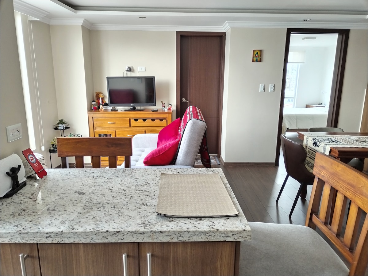 Benvenuto nel nostro appartamento nel cuore di Quito, dove eleganza e comfort si incontrano per offrirti un'esperienza di soggiorno unica. L'appartamento include quanto segue: - Letto matrimoniale - Divano letto - Smart TV con Netflix - Cucina attrezzata - Arredi nuovi di zecca - Wifi veloce - Sicurezza 24 ore su 24, 7 giorni su 7 - Parcheggio privato La migliore posizione a Quito: - A pochi passi dal Parco La Carolina, dal Giardino Botanico di Quito e dalla stazione della metropolitana - Vicino ai migliori centri commerciali di Quito (CCI e Quicentro)