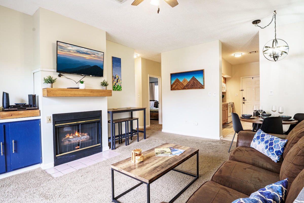 Posizione, posizione, posizione! Questo è un appartamento incredibile nel cuore di Pigeon Forge! Vicino a Dollywood e a 2 minuti da tutta la vivacità della strada principale. L'appartamento è ottimo per una coppia o una piccola famiglia in vacanza. Dopo lunghe giornate in città, goditi un po' di relax nell'appartamento, godendoti la piscina della comunità o rilassandoti nel patio posteriore. Organizza una serata cinema e goditi la TV a schermo ultra piatto 4K da 60" nel soggiorno o la TV a schermo piatto da 50" nella camera da letto