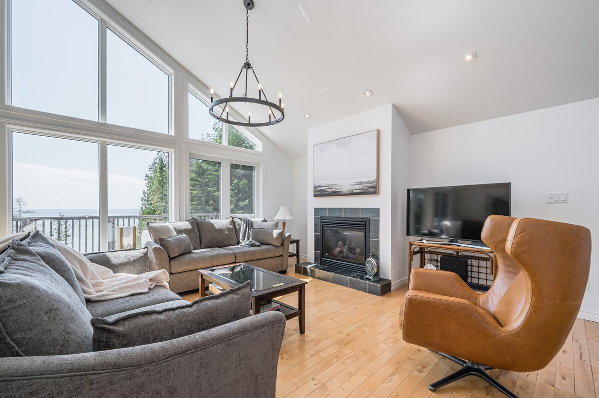 Posizione, posizione, posizione. Spettacolare cottage sul lungolago Huron, aperto tutto l'anno, a 10 minuti da Tobermory. Citato in un articolo di Trips to Discover. Intero piano principale senza barriere architettoniche, soffitti alti 2,7 metri e 2 terrazze ti aspettano. L'accesso privato all'acqua, insieme ai kayak e alle tavole da SUP in dotazione, migliorano il soggiorno. L'ampio focolare all'aperto ti permetterà di trascorrere molte ore di intrattenimento serale. Guarda i video tour su YouTube: "Welcome to Tamarack By The Bay" di CL Visuals e Calvin Lu.