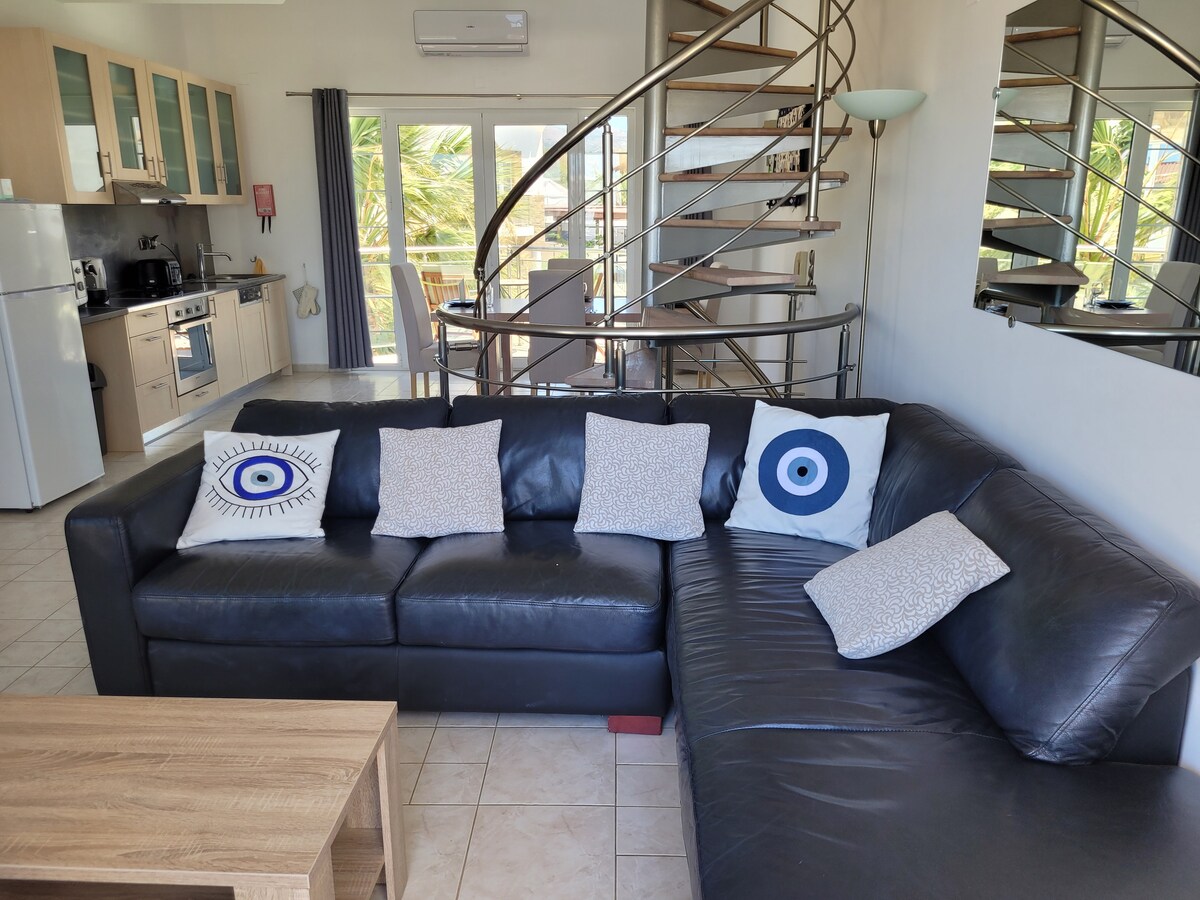 Benvenuti nel nostro splendido rifugio su due livelli accanto a una spiaggia incredibile, ideale per le famiglie. Godetevi 2 camere da letto con bagni interni, una cucina completamente attrezzata, un'area soggiorno accogliente, un balcone con viste sul mare, e un patio giardino privato con lettini prednisole. Gli ospiti hanno accesso alle piscine comuni del resort, inclusa una piscina per bambini, e a un bar & snack bar stagionale. Unendo perfettamente comfort e meraviglie naturali.
