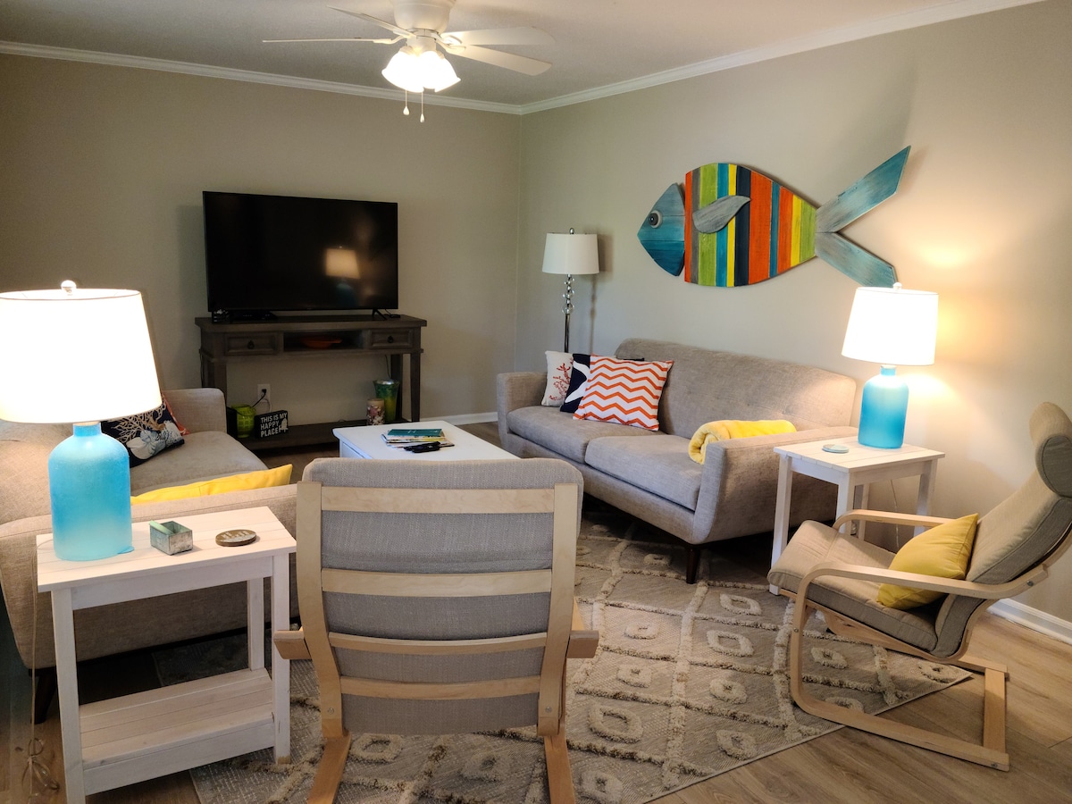 Questa tranquilla casa immersa tra gli alberi offre una vita tranquilla sull'isola. La cucina completamente attrezzata offre molto spazio per creare deliziosi pasti e ricordi insieme. Sorseggia il tuo caffè mattutino e leggi un buon libro nella veranda. Fai una breve passeggiata in uno dei parchi privati sul lungomare o nella vicina spiaggia per ammirare le nostre splendide albe e tramonti. Goditi un tè dolce e le brezze oceaniche nel tranquillo portico anteriore. Rilassati, stacca la spina e trova rifugio a "The Light House".