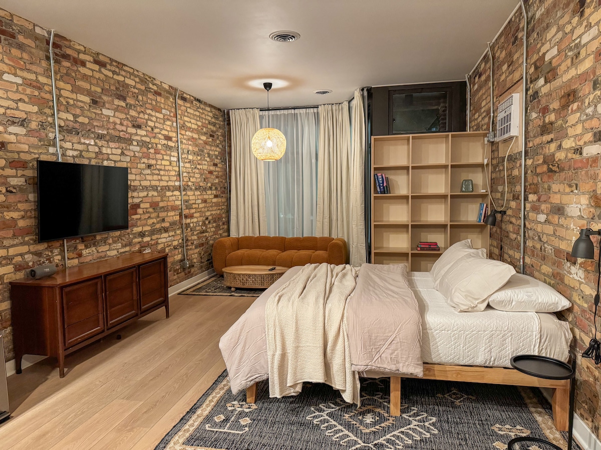 Dependance "Tiny House" situata sotto grandi querce vicino alla spiaggia e non lontano dalla I-94 e dal confine con lo stato del Michigan. Soffitto a volta, sensazione di apertura. Arredamento chiaro e luminoso. Bagno completo, divano comodo e altri servizi. Pavimento in cemento lucidato, soffitto in legno sbiancato, mobili in rovere realizzati a mano, scaffalature sospese. Soffitti alti, finestre con esposizione a sud, portico anteriore con sedie e griglia. Comoda postazione di ricarica per auto elettriche. Nessuna spesa di pulizia.