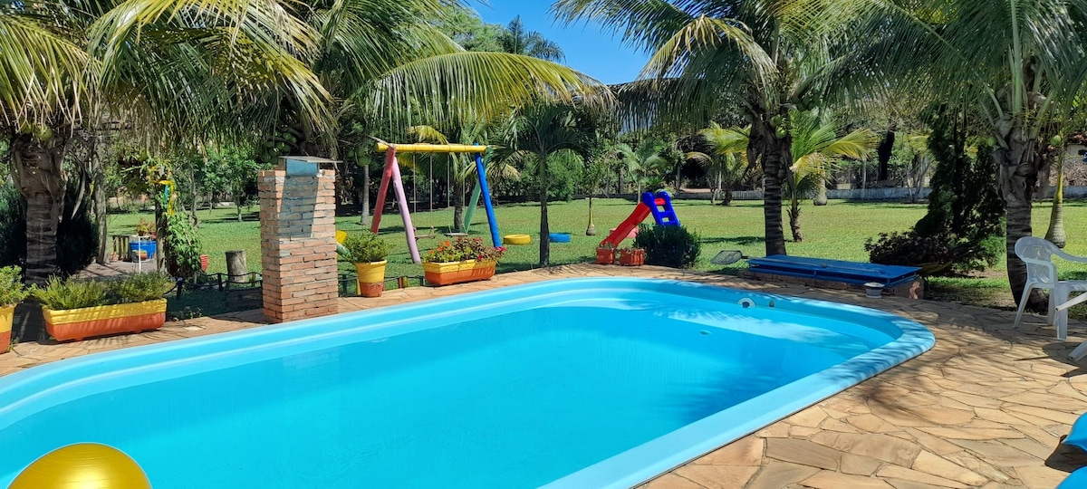 Recanto da Paz Eventos è per un gruppo più grande di massimo 10 persone, dove potrete godere di pace, tranquillità e divertimento!!! Una coppia (di host) vive nella fattoria. Ci sono due cani!! Oltre alle camere da letto (un totale di 3 letti matrimoniali, 1 letto a due piazze), c'è un materasso extra per ospitare tutti! Ha 3 bagni e altri 2 nella zona piscina!