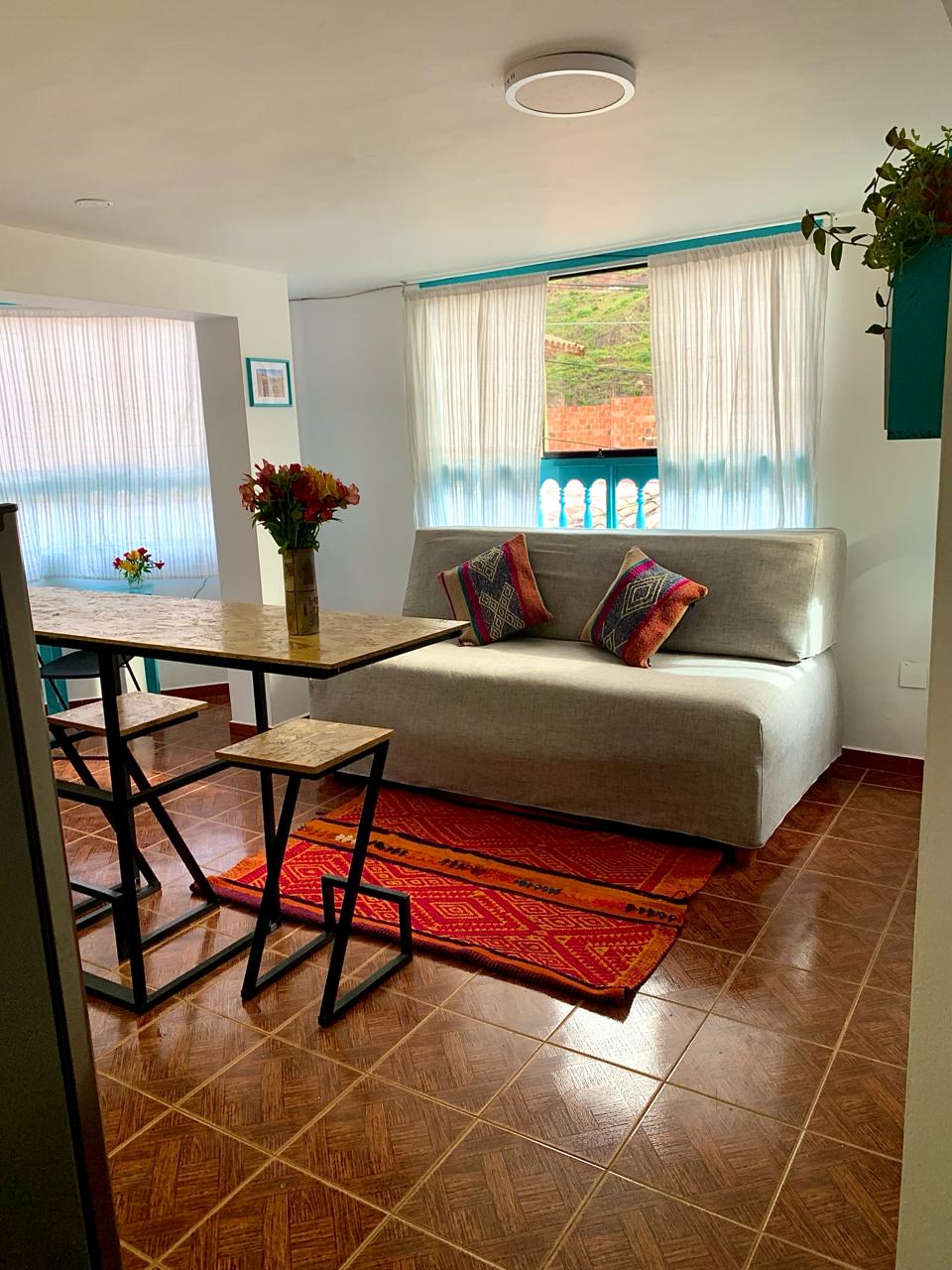 Appartamento indipendente nel centro di Pisac. Situato nella strada più turistica del paese, a 1 isolato dalla Plaza de Armas e a 50 metri dal mercato principale. Lo spazio è molto accogliente e silenzioso. Completamente arredato e con cucina attrezzata. Ideale per coppie e/o piccole famiglie. Dispone di una camera privata con letto matrimoniale e di un soggiorno con divano letto. Potete consultarci su attività ed esperienze per godervi la zona.