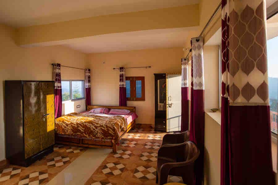 Escape into nature at our cozy homestay, located in the South Binsar Forest (Wildlife Sanctuary Buffer Zone) near the famous Jageshwar Dham (125+ temples) and just 27 km from Almora. Offering clean rooms with essential amenities, home-style vegetarian meals, Wi-Fi, evening bonfire, and open sitting spaces, it’s a perfect retreat for nature and lovers.Offering self-service rented rooms, guests are encouraged to handle their own luggage transfer and housekeeping, ensuring privacy and independence.