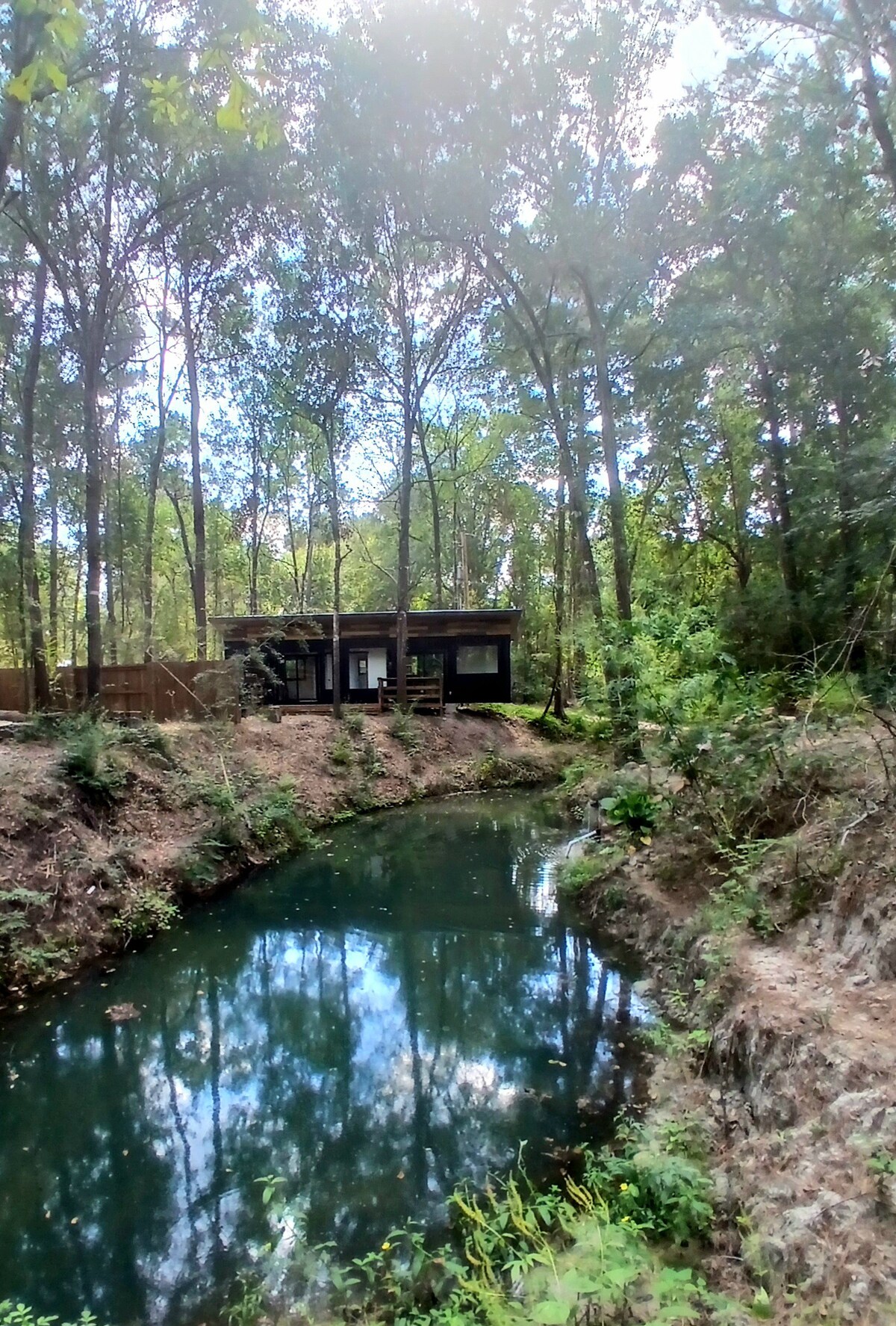 Rifugiati in questo tranquillo cottage con 1 camera da letto circondato dalla natura. Il cottage presenta tonalità neutre, texture in legno naturale e un'illuminazione delicata. Goditi una cucina completamente attrezzata, un accogliente soggiorno, un bagno moderno e un lussuoso letto matrimoniale per un sonno ristoratore. Trascorri le tue giornate pescando, facendo canottaggio o paddle boarding sul lago privato. A pochi minuti dal famoso Texas Renaissance Festival, questo tranquillo rifugio è la miscela perfetta di calma, comfort e fascino di campagna.