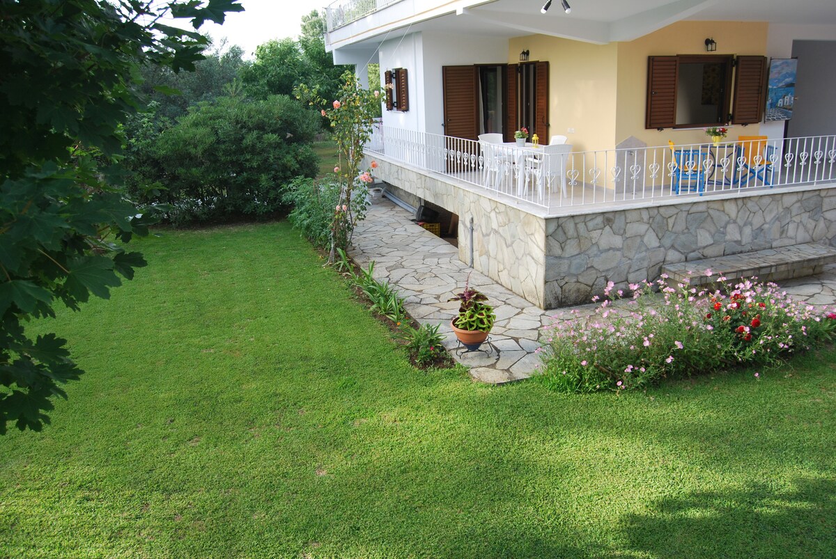 Il nostro appartamento unico è situato al secondo piano di una casa da sogno a Epanomi. Si trova a 3'di auto dalla spiaggia, in un quartiere tranquillo. Godrai della vista della montagna dell'Olimpo, del mare e del tramonto! Un letto comodissimo, un accogliente divano letto per due persone, uno spazio ben progettato con vasca idromassaggio, un enorme balcone, un fantastico giardino e barbecue, un parcheggio sicuro, sono alcuni dei servizi. Epanomi è molto vicina all'aeroporto di Salaliniki e Makedonia!