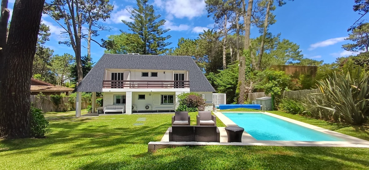 Casa completa con PISCINA y PARRILLERO! Moderna y muy luminosa. Amplio y hermoso jardín. 2 dormitorios, dos baños. Zona Jardínes de Córdoba - Punta del Este (Próximo a Devoto de Av Roosvelt) Capacidad para 4/5 personas. 600 mts2 de jardín, estacionamiento, alarma, Wi fi, 2xTV, 2xApple TV, 2 baños, cocina completa con heladera, horno eléctrico y microondas, desayunador, comedor, hall de entrada, living-comedor, al fondo deck de 30 mts, Deck al frente 12 mts.