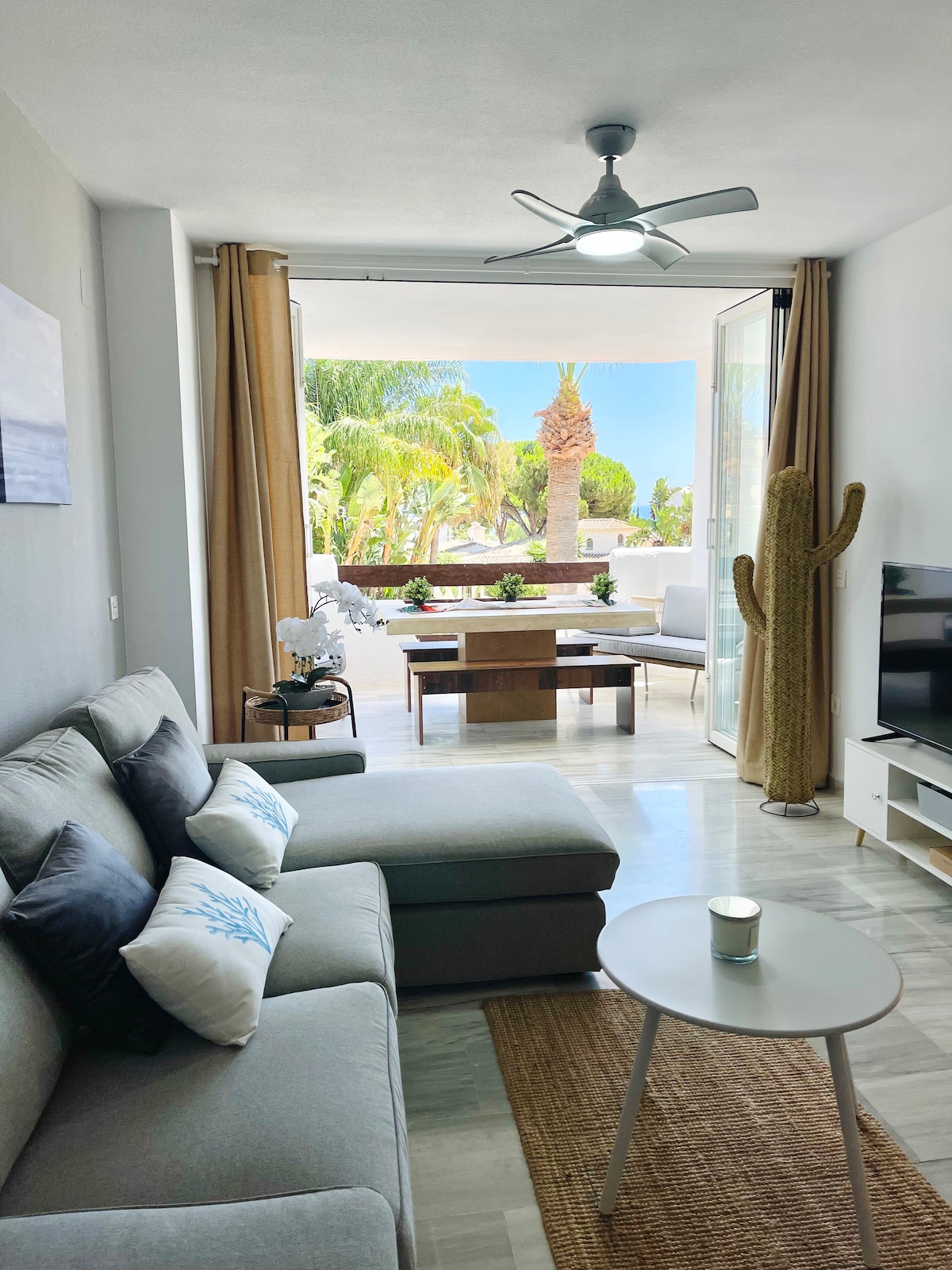 Lussuoso appartamento con 2 camere da letto completamente ristrutturato e con vista panoramica. Situato su una delle migliori spiagge, a 5 km a est di Marbella. Ristoranti sulla spiaggia e chiringuito a 2 minuti a piedi! Supermercati, tennis club e campo da golf a 3 minuti in auto o a piedi. A 3 minuti a piedi anche bar per la colazione, ristoranti italiani, barbecue e pizzerie. Parcheggio gratuito in loco. Molto confortevole e ben arredato. Biancheria da letto, asciugamani e teli da mare inclusi. Situato in una zona con servizio di sicurezza. Nuova cucina con lavastoviglie e lavatrice. ARIA CONDIZIONATA Wifi