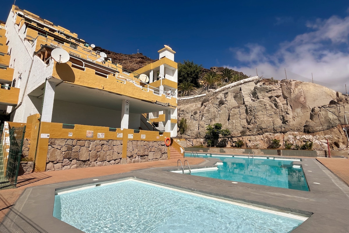 2 camere + soggiorno: divano,tv; cucina attrezzata con lavatrice, frigorifero; ampio balcone con tavolo, sedie + lunghe sedie. Posizione eccellente: vista sull'oceano, a 150m dalle spiagge, residenza tranquilla, ascensori, 3 piscine: ombrelloni, sedie a sdraio, slittino (minimo alto 120cm) parco giochi per bambini. Vicino (50 m) a supermercato, ristoranti, bar, farmacia, bancomat, campo da golf. Stazione di taxi / autobus per l'aeroporto, Maspalomas, Porto Rico, Amadores, Amfi, Puerto de Mogan. Wifi gratuito nell'appartamento