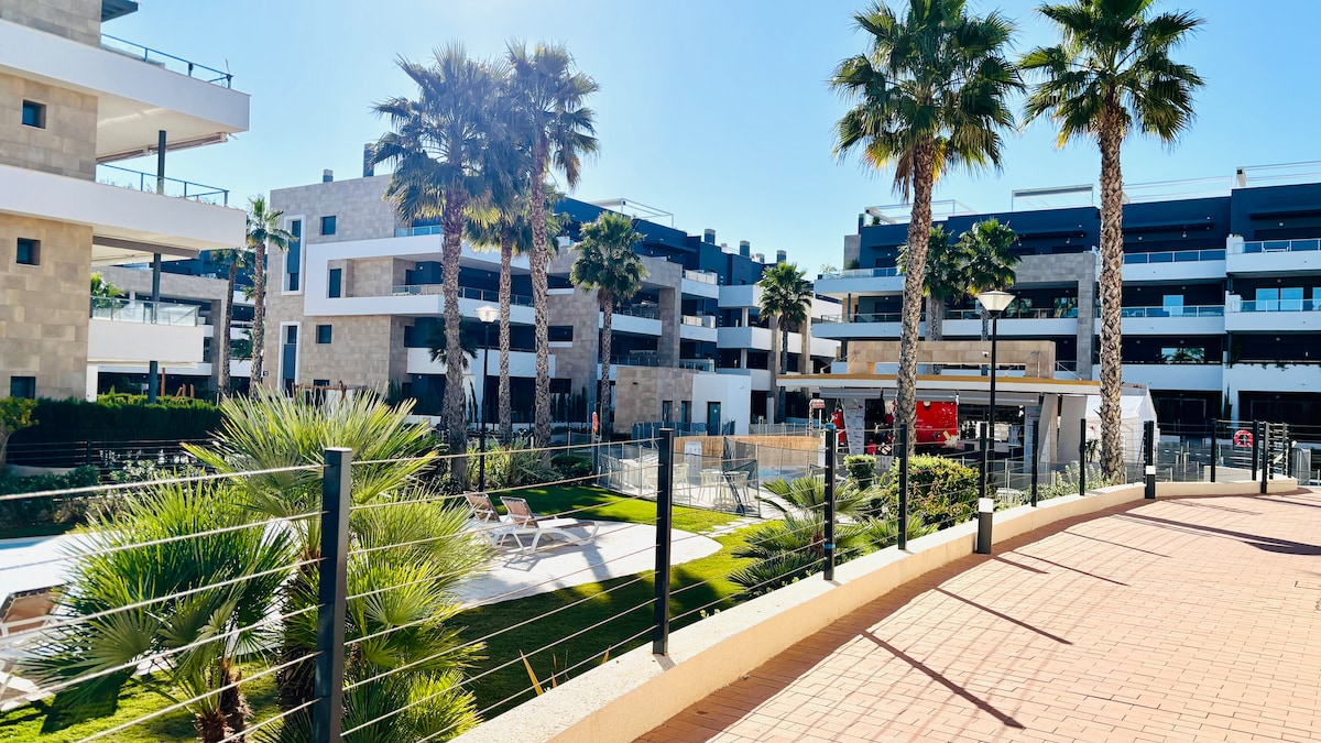 Benvenuti all'appartamento Arbequina nel villaggio di Flamenca, a pochi passi da Playa Flamenca, La Zenia Beach e dal centro commerciale all'aperto Flamenca Boulevard. Questo elegante appartamento per famiglie si affaccia sul cortile e include un parcheggio sotterraneo sicuro dedicato. Goditi piscine multiple, vasche idromassaggio, una palestra, una sauna e un bar per rilassarti. Con la spiaggia, lo shopping e i servizi in stile resort tutti nelle vicinanze, è il luogo perfetto per tutte le età per rilassarsi, esplorare e godersi lo stile di vita della Costa Blanca.