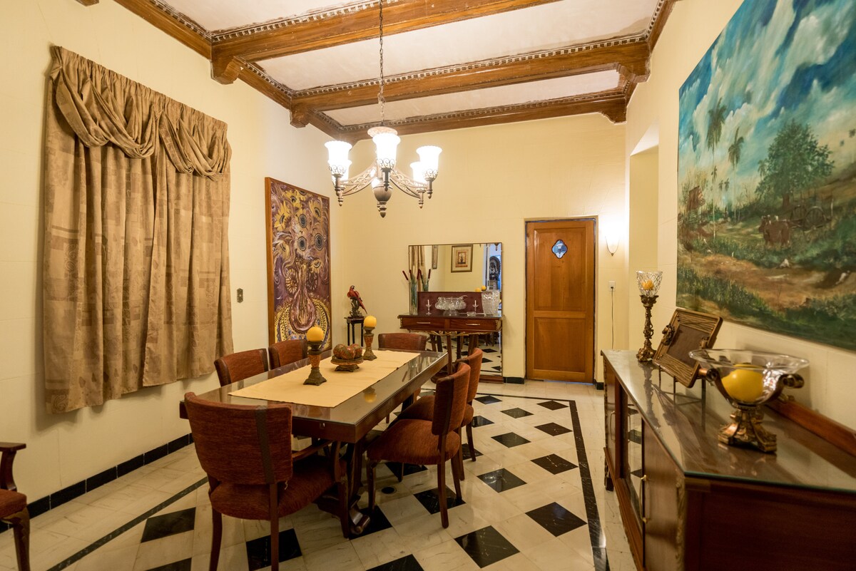 Lussuosa e confortevole casa coloniale del 1919, meticolosamente ben tenuta, situata nel centro della città, a 6 minuti a piedi dal lungomare dell'Avana e da tutti gli hotel più emblematici. Zona residenziale vicina a tutto, molto tranquilla, dove è possibile sentire il canto degli uccelli che si mescola a quello del vento tra i grandi alberi. Ampie terrazze all'aperto e attenzione personalizzata che garantisce una pulizia impeccabile, simbolo di eccellenza del nostro spazio. Capacità massima di 24 ospiti, wifi gratuito.