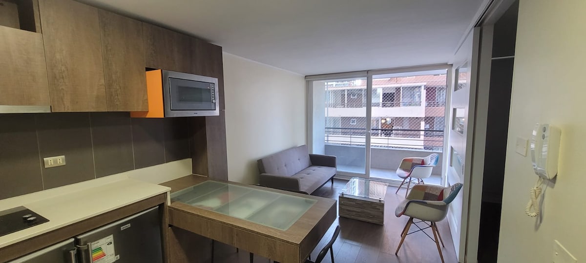 Moderno appartamento a pochi passi da Plaza Ñuñoa e dalla metropolitana Chile-España. Il design degli interni integra gli ambienti, generando ampiezza negli spazi, con una proposta innovativa ispirata agli hotel boutique europei. Rilassati in questo spazio tranquillo, confortevole ed elegante. Parcheggio nel primo piano interrato, tende a rullo oscuranti, cucina completamente attrezzata con piano cottura in vetroceramica, forno con microonde integrato, frigorifero, cabina armadio, finestre termopannelli, porta doccia e molto altro.
