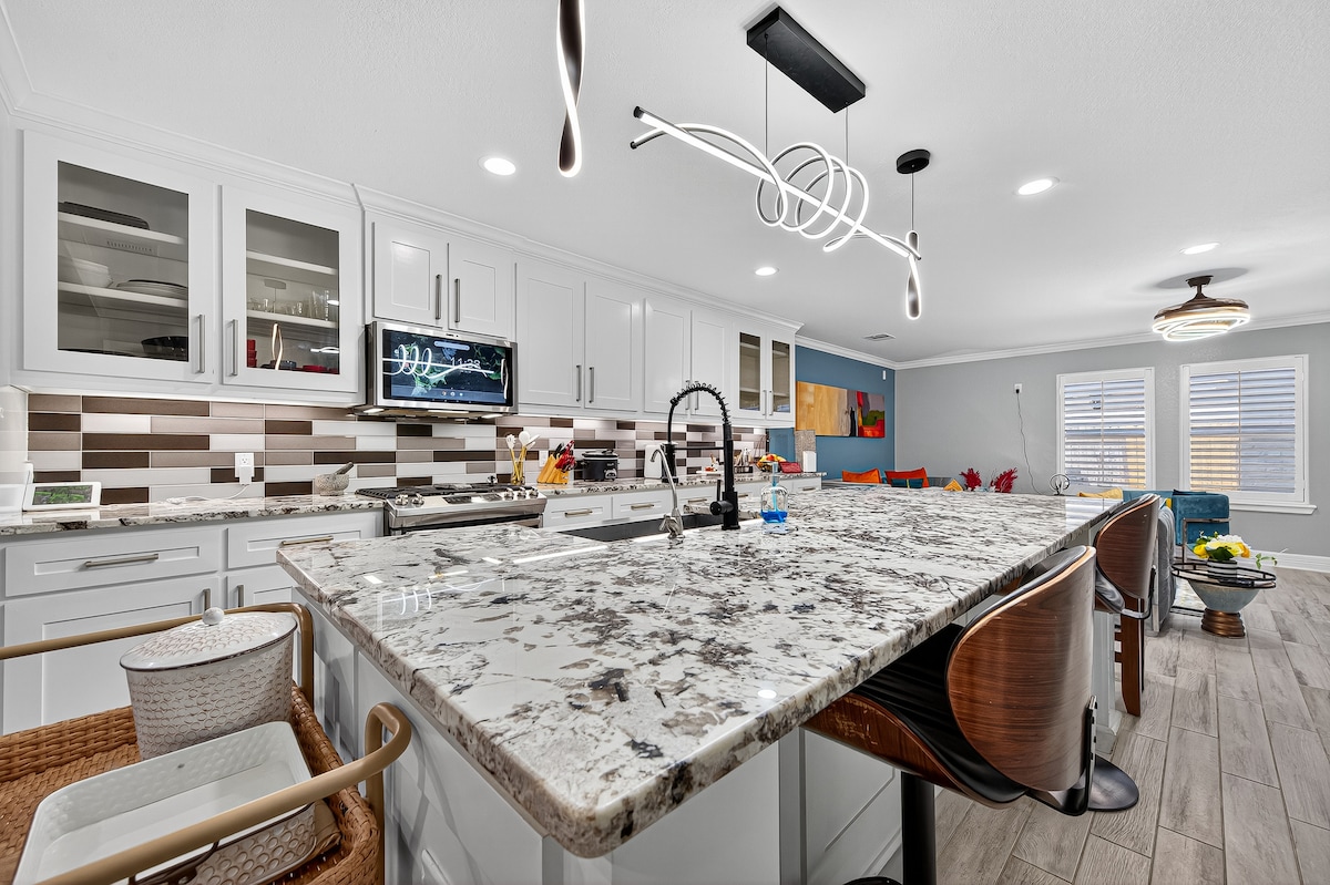Rilassati in questa casa con 3 camere da letto e 2 bagni, splendidamente ristrutturata, che può ospitare comodamente 8 persone. Perfettamente situato vicino all'autostrada 59, al Fort Bend Epicenter e al Fort Bend Fairgrounds, avrai un facile accesso a eventi, ristoranti e negozi. Goditi i comfort moderni, l'arredamento elegante e una cucina completamente attrezzata. Rilassati nell'accogliente soggiorno dopo una giornata trascorsa a esplorare. Ideale per famiglie, gruppi o viaggiatori d'affari che cercano comfort e comodità in un ambiente tranquillo.