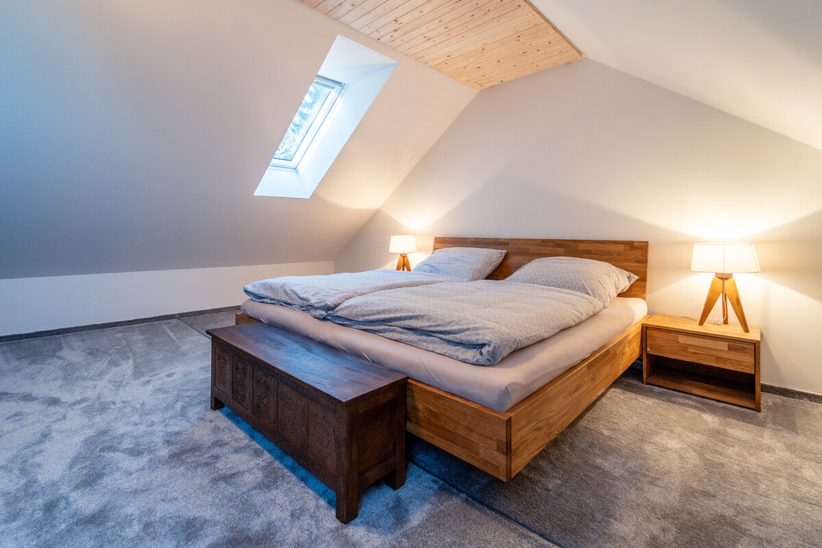 L'alloggio si trova nella zona termale, ma è possibile parcheggiare gratuitamente a 3 minuti a piedi da qui. C'è anche la fermata dell'autobus. Allo stesso tempo, si trova a pochi metri dalla famosa Colonnata del Mulino. Il viale principale Masaryk è raggiungibile in 7-10 minuti a piedi. Il posto è adatto alle coppie per la sua intimità da attico. C'è la connessione Wi-Fi veloce gratuita e un bagno con pavimenti in pietra riscaldata e asciugacapelli. Asciugamani, sapone, shampoo, caffè e tè inclusi! PARCHEGGIO GRATUITO - 3 minuti a piedi