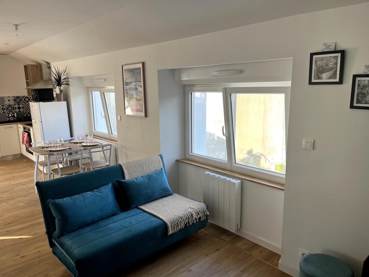 Lasciatevi sedurre da questo grazioso appartamento di 50 mq, situato tra spiaggia e porto, per una fuga unica! Con la sua vetrata che si apre direttamente sullo sciopero , potrete godere di un ambiente eccezionale dove il mare e la vita portuale si mescolano armoniosamente. • Vista mozzafiato: Dal soggiorno, ammirate il tramonto. Spettacolo con l'alta marea. Perfetto per una coppia che desidera essere nel cuore del paese. A 150 metri dai ristoranti del porto e a 50 metri dal negozio di alimentari locale.