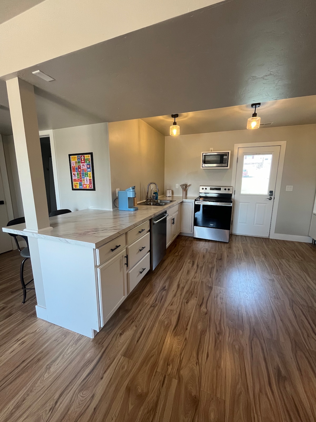 Goditi il mio elegante e accogliente duplex che ho appena finito di ristrutturare! Questo è il livello inferiore del seminterrato. C'è un piccolo bar con piano di lavoro in granito, forno a microonde, mini frigo e macchina da caffè Keurig. Soggiorno con smart TV. Cabina doccia e internet ad alta velocità! Ideale per una persona sola o una coppia che non ha intenzione di cucinare. Situato nel centro storico di Pocatello, vicino al sistema di sentieri City Creek. Ideale per escursioni e ciclismo! LEGGI LA DESCRIZIONE COMPLETA e le REGOLE DELLA CASA prima di prenotare, per un soggiorno di successo!