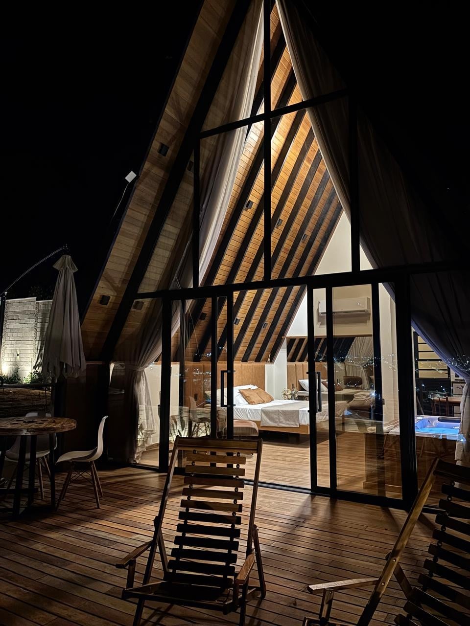 Venha se hospedar em um chalé de madeira a mais de 1200 m de altitude, localizado na encantadora cidade de Poços de Caldas, em meio as montanhas do sul de Minas Gerais. O chalé conta com banheira de hidromassagem, ar condicionado (frio e quente), cama queen em um aquário de vidro, deck com visão para as montanhas e um por do sol inesquecível, além de área externa com gramado de mil metros, lareira de jardim, um pergolado para piquenique romântico e fotos inesquecíveis, com seu love e seu pet !
