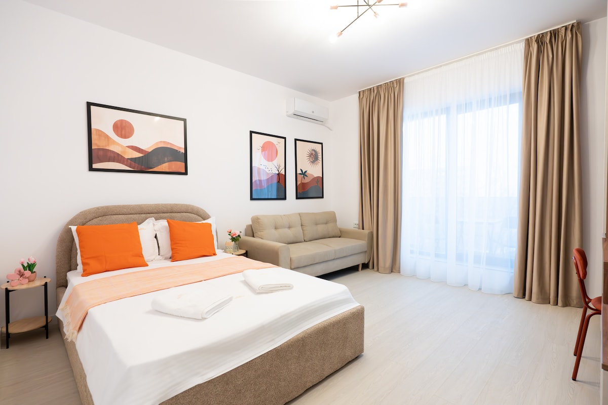 Accogliente appartamento situato in una zona tranquilla e comoda a Bucarest, Pace! Questo è il luogo ideale per una vacanza accogliente, sia che tu stia visitando la città per lavoro o per rilassarti. L'appartamento è composto da una camera da letto con comodo letto matrimoniale e un ampio salone, dotato di divano letto, perfetto per rilassarsi dopo una giornata di esplorazione. A pochi minuti dalla stazione della metropolitana Peace.. Vicino a negozi, ristoranti e caffetterie locali. Facile accesso a parchi e spazi verdi.