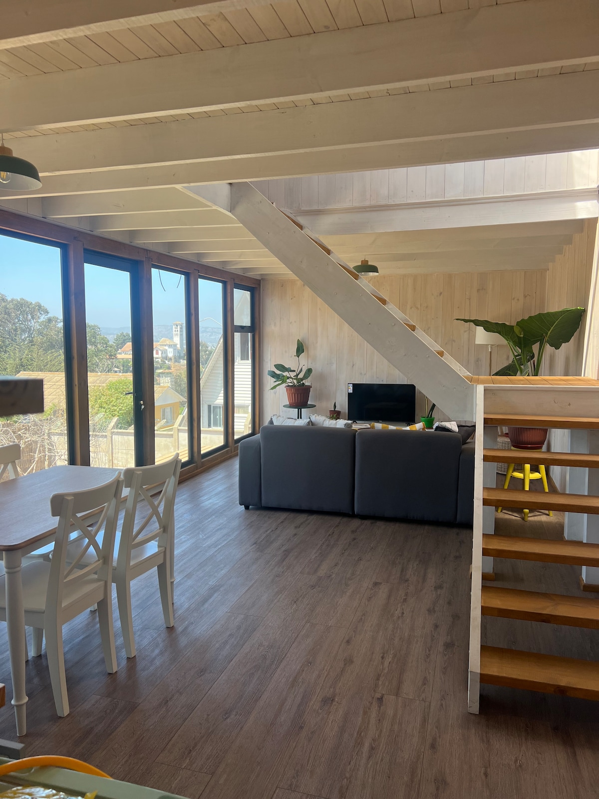 Questo loft in stile moderno offre una splendida vista sull'oceano con vista sulla spiaggia e sul museo Pablo Neruda. La casa e il sito offrono privacy e allo stesso tempo un facile accesso alla spiaggia e al commercio locale. Una camera da letto al piano superiore con bagno e terrazza. Una camera da letto al piano di sotto. Letto di ricambio per bambini disponibile. Si precisa che la vasca idromassaggio non è funzionante e che non è presente il riscaldamento centralizzato, un solo termosifone in ogni camera da letto. La lavastoviglie non funziona in questo momento.