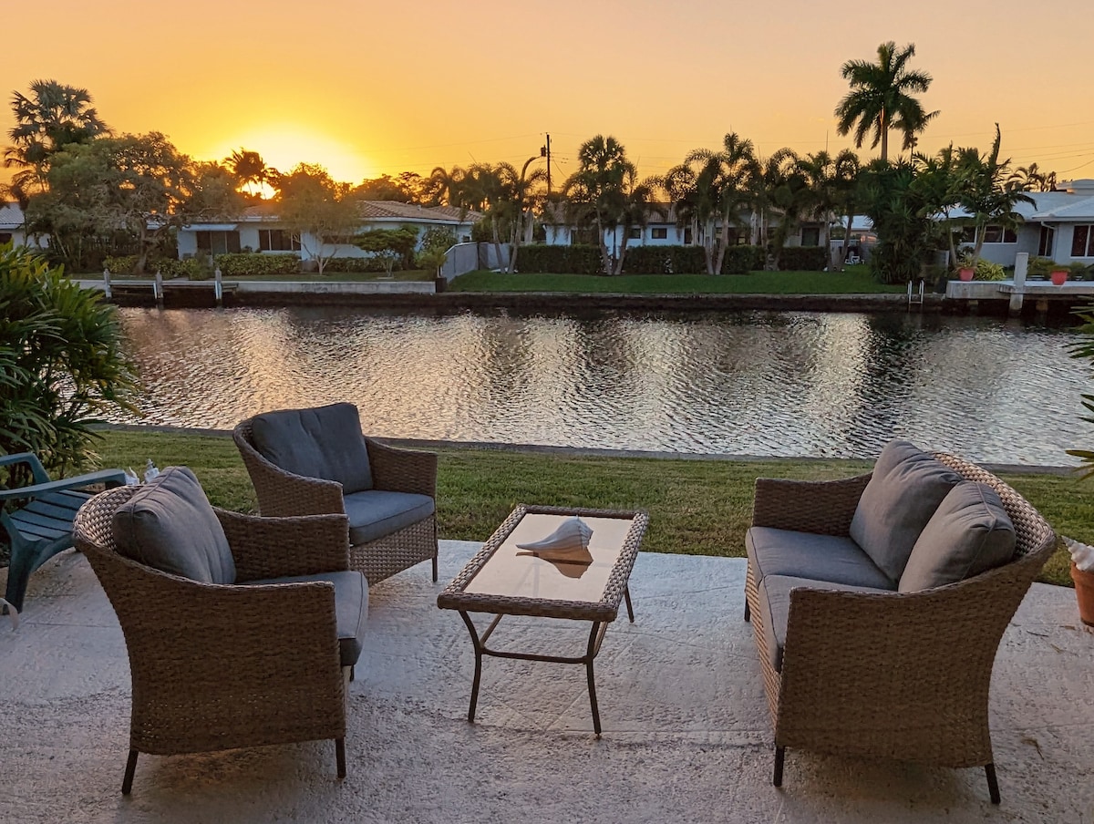 ☀️ Waterfront 3BR/2BA South Florida home with heated pool, dock and ocean access on a deepwater canal. The highlight is the HUGE private backyard: a wide pool deck, tons of cushioned lounge seating, and a beautiful outdoor dining area that looks straight out over the water. Fire up the BBQ, relax under the palms and watch boats cruise by at sunset. Kayak included. Short drive to Deerfield Beach, Pompano Beach, shopping, restaurants and nightlife. Perfect family-friendly Fort Lauderdale vacation.
