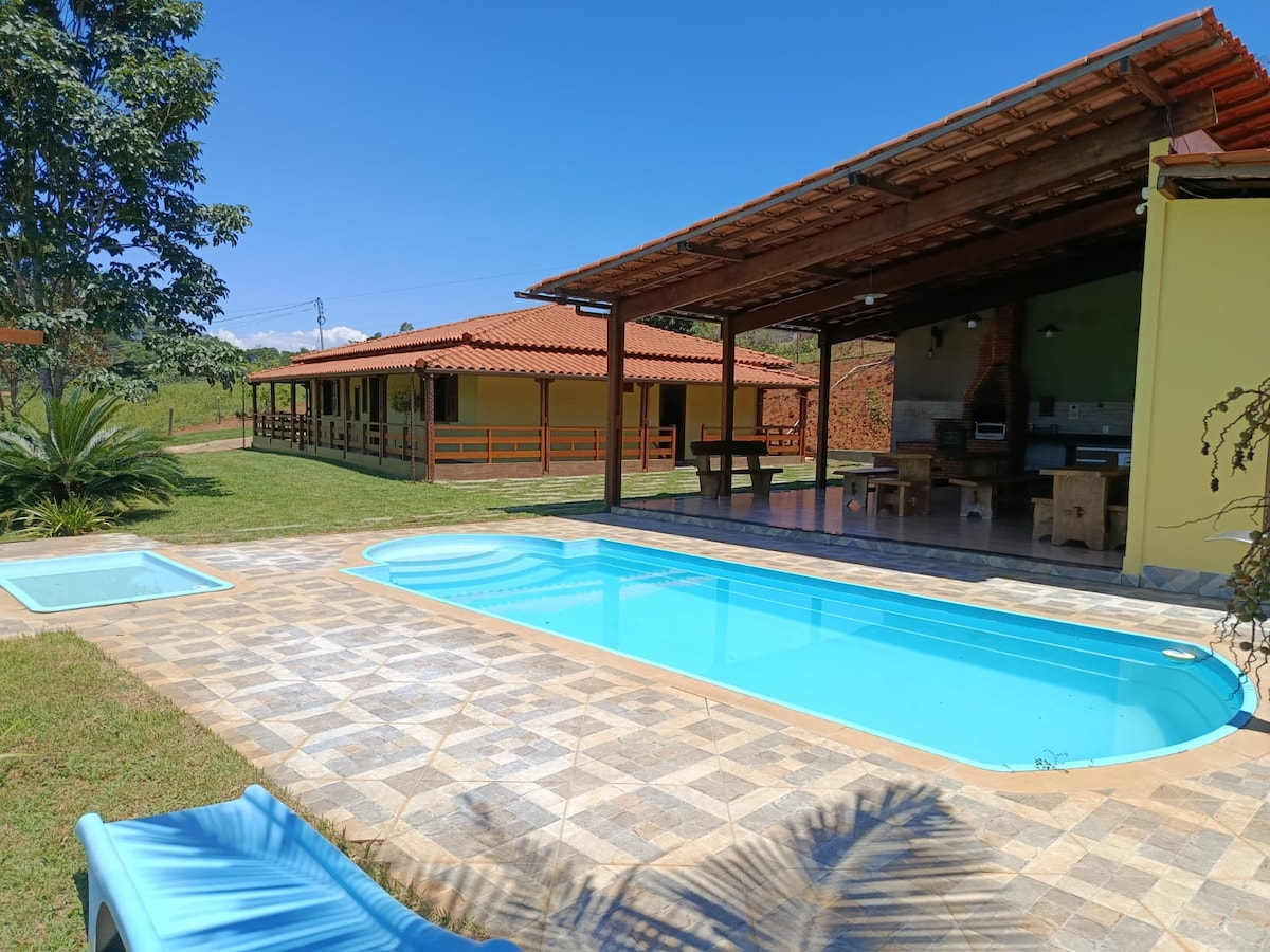 Espaço amplo com Salão de Festa e 8 Suítes, ideal para acomodar famílias, empresas ou grupo de pessoas. Fácil acesso.