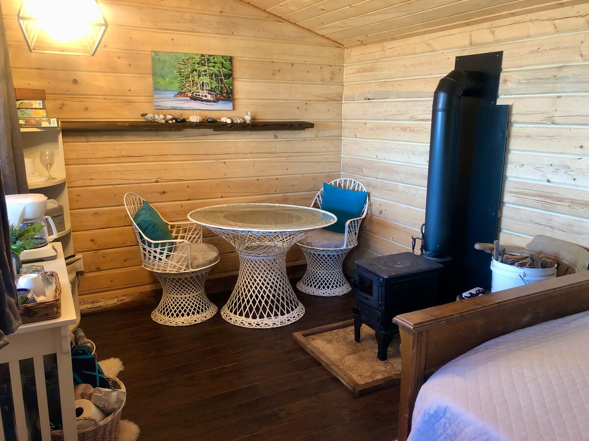 Rilassati e distenditi in questa vacanza unica e tranquilla. Il nostro piccolo chalet si trova di fronte all'oceano, di fronte allo stretto di Hecate. Abbiamo chilometri di spiaggia appartata dove puoi goderti il sole che sorge e le maree oceaniche. La piccola baita ha tutto il necessario per rendere il tuo soggiorno confortevole: una stufa a legna, un riscaldatore, un letto matrimoniale, un angolo cottura, un barbecue e un braciere. C'è un bagno completo in comune separato con una doccia privata all'aperto. C'è molto spazio per montare una tenda, oppure possiamo sistemare un materasso sul pavimento per i bambini.