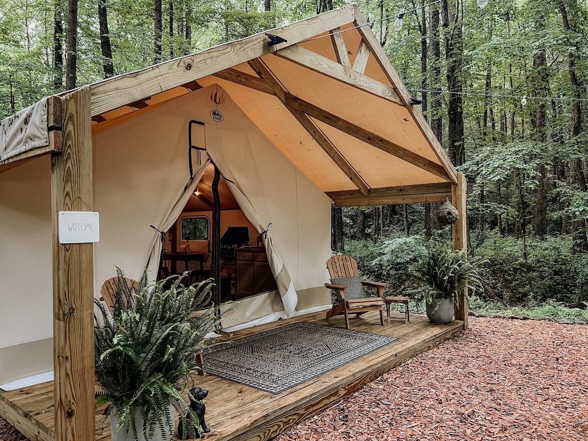 Il glamping è un'esperienza di campeggio unica nella Virginia Occidentale, che ti permette di riconnetterti con la natura. L'attività del campeggio con alcuni dei comfort e dei lussi di casa. Le nostre tende offrono molti dei servizi di cui non puoi fare a meno quando fuggi dalla città. ARIA CONDIZIONATA/RISCALDAMENTO, lenzuola fresche, frigorifero, forno a microonde, tappeti, wifi, elettricità e molto altro.