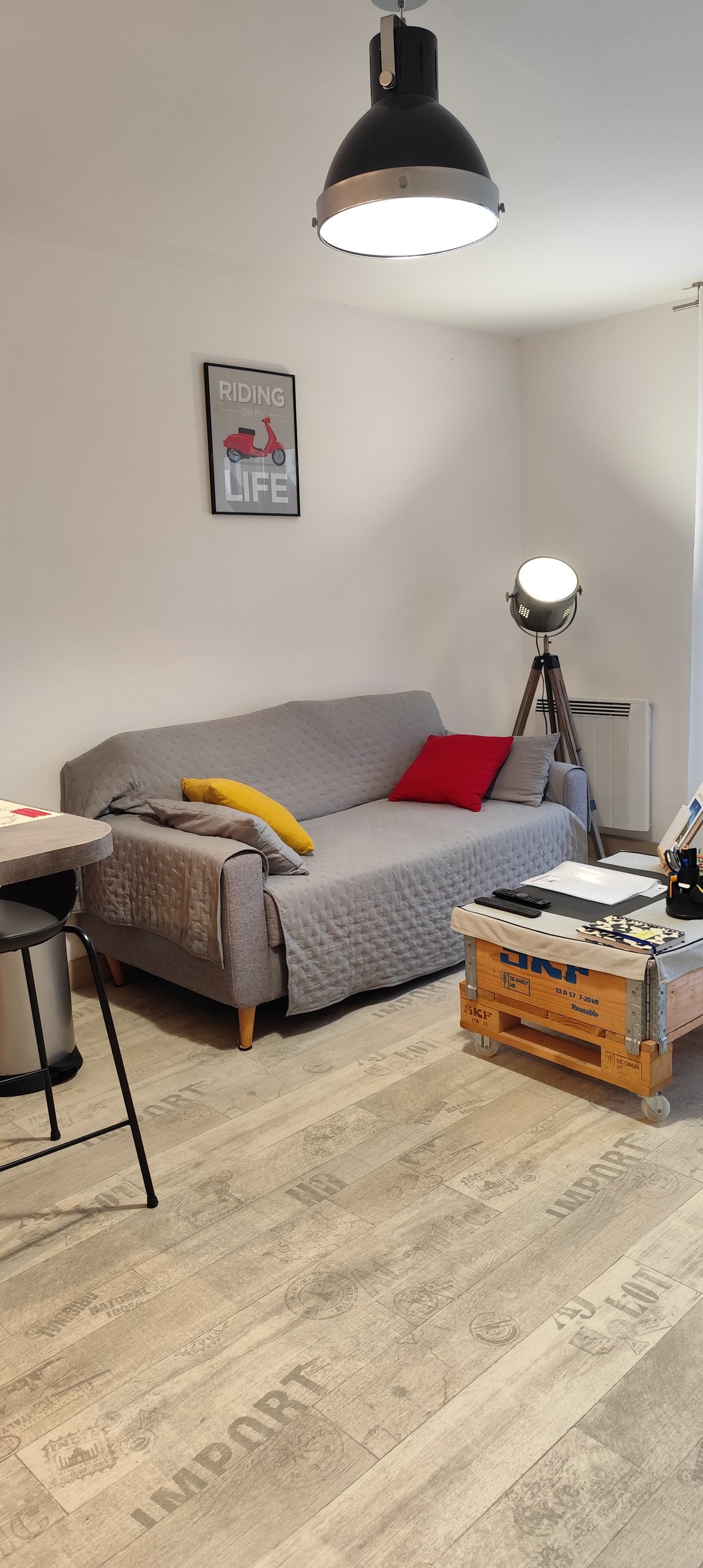 Studio cosy, chaleureux, tout équipé.