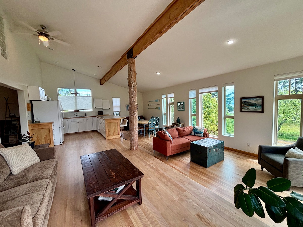 Our beautiful waterfront cabin has been updated and renovated. New kitchen, dishwasher, heat pump for air conditioning and air filtration, new decks and fresh paint throughout. You will love the view and the open space concept. It's a great place to relax, go for walks on the beach or swim in the ocean. This cabin is perfect for families with children, couples or groups of friends .Spend time together, make meals in the fully equipped kitchen or have a BBQ while making lasting memories.