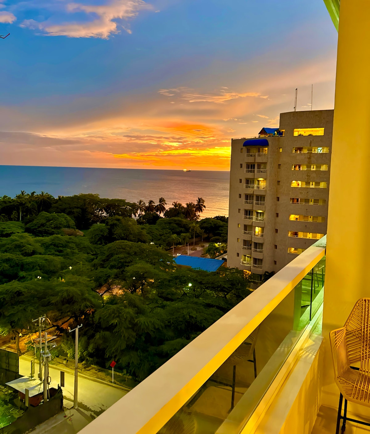 Rilassati in una vacanza unica e tranquilla con vista sull'oceano e una Jacuzzi privata all'interno dell'appartamento di lusso, goditi una TV da 70 pollici e una cucina attrezzata. Situato in un esclusivo condo-hotel nella zona turistica di Santa Marta, a soli 3 minuti a piedi dalla spiaggia più bella di Bello Horizonte, ideale per coppie o 3 o 4 persone: letto matrimoniale di lusso + letto matrimoniale ausiliario. Pulizia giornaliera gratuita. Goditi un hotel a 5 stelle e vivi un'esperienza indimenticabile. Prenota ora!
