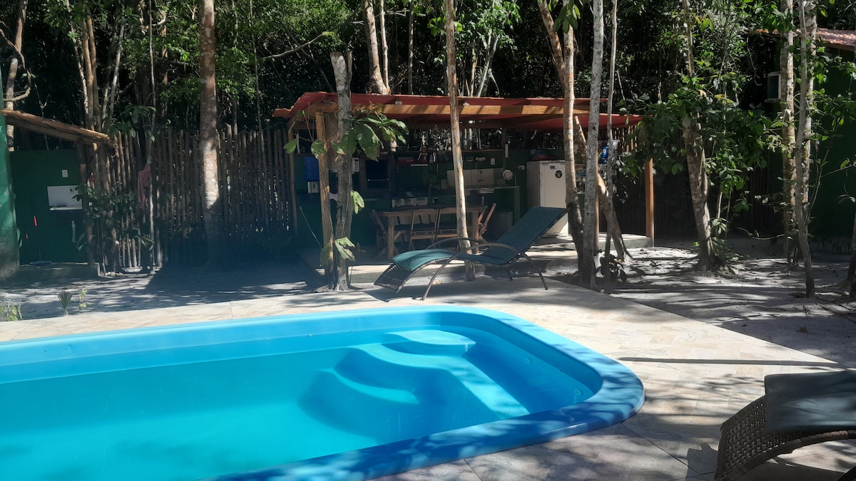 Se cerchi pace e natura, hai trovato il posto giusto! Il nostro chalet è confortevole, circondato da alberi, con amache e vasca idromassaggio all'aperto. Ideale per rilassarsi con intimità, privacy e clima bahiano. Si trova in un quartiere tranquillo, vicino al mare, a 250 metri da una spiaggia deserta con un bellissimo sentiero, a 500 metri dal centro dove si trovano negozi e ristoranti e a 5 km dall'incantevole Ponta de Corumbau.