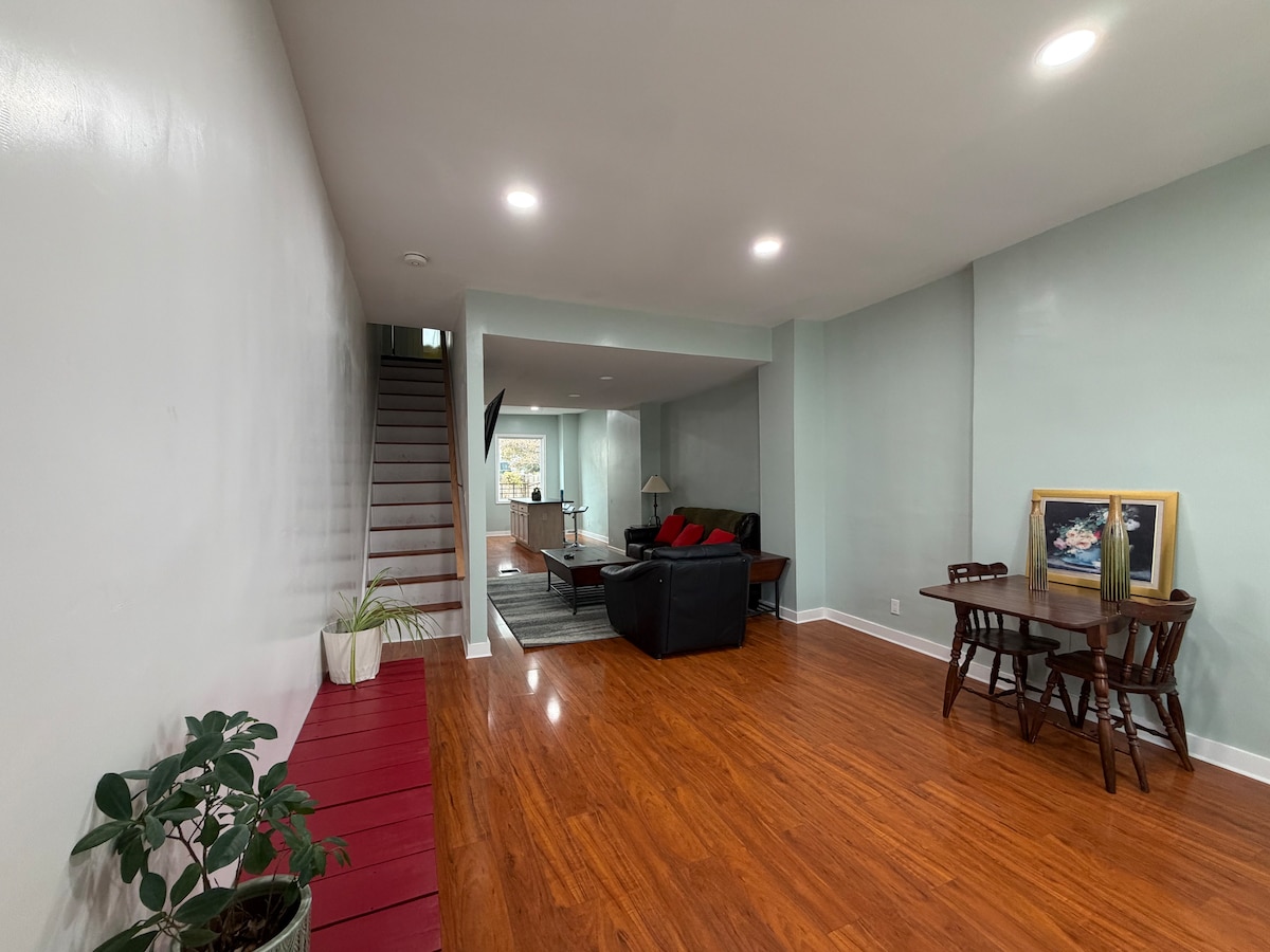 Less than a mile from Ravens and Orioles stadiums, our charming 2-bedroom Baltimore townhouse is the perfect home base for your visit. Enjoy fast Wi-Fi, three large-screen TVs, convenient parking, and a fully equipped eat-in kitchen with a large dining table for relaxing meals. Located just a 5-minute drive from the Baltimore Convention Center and close to great restaurants, museums, and the casino—perfect for sports fans, business travelers, and city explorers alike.