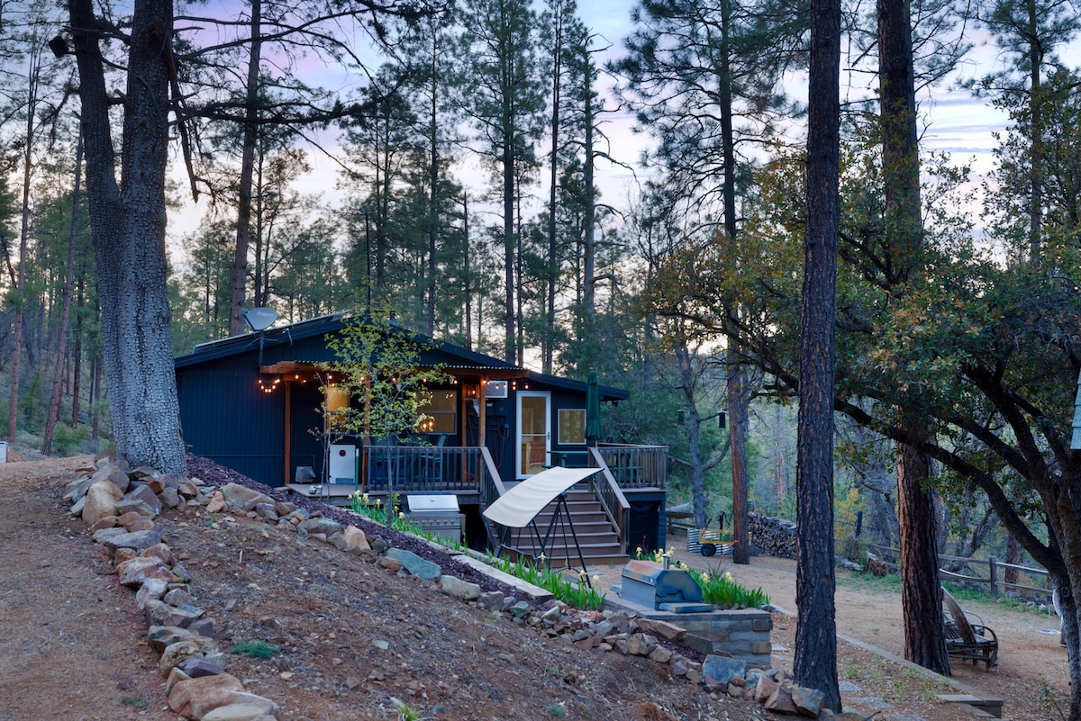 Goditi una vacanza speciale nel nostro chalet completamente rinnovato, "The Apple Knoll". Il nostro chalet si trova su un terreno boscoso di 2 acri, a soli 5 minuti di auto da Courthouse Square e a 1,6 km dal lago Goldwater. È un alloggio di 37 metri quadrati, rustico e affascinante, con camino in pietra, soffitti a volta con travi a vista e persino un soppalco per dormire, nascosto nella foresta nazionale di Prescott. Se sei in cerca di una vacanza incantevole e romantica o di un fine settimana per staccare la spina e rilassarti, questo è il posto che fa per te! TPT- 2153577