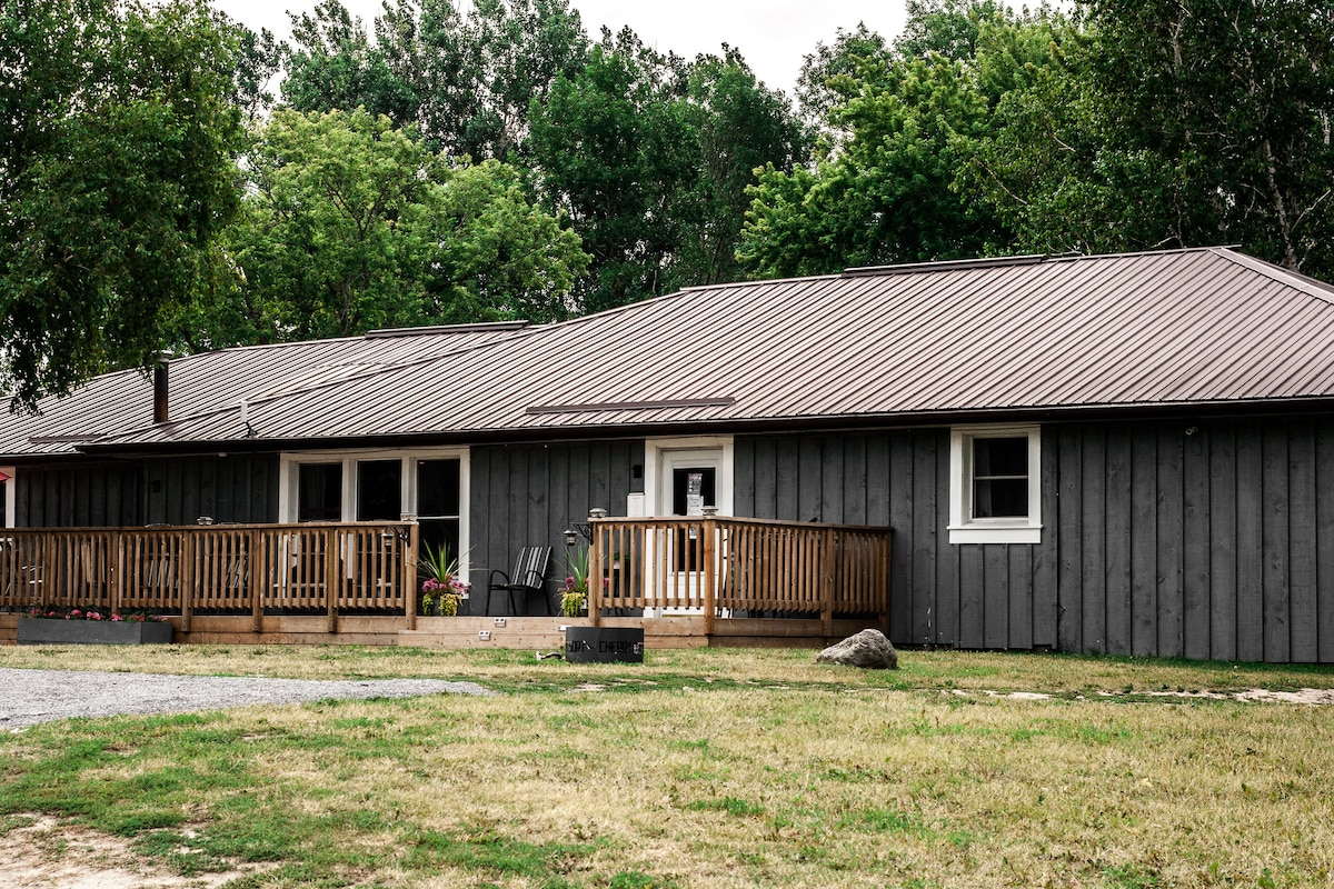L'Evergreen è un'accogliente e moderna casa in legno di 4 stagioni con 2 camere da letto e un ufficio. Questa casa di famiglia vanta una vita a pianta aperta e un tranquillo cortile privato di 2 ettari con vasca idromassaggio! Pozzo del fuoco, piscina fuori terra, barbecue e gazebo schermato aperto stagionalmente. L'Evergreen è uno spazio sicuro e inclusivo dove tutti sono i benvenuti! Questa è una casa più vecchia, non un hotel; amiamo le sue imperfezioni e ci auguriamo che lo faccia anche tu! Legna da ardere non inclusa, barbecue non disponibile nei mesi invernali. La nostra piscina riapre nella tarda primavera del 2025.