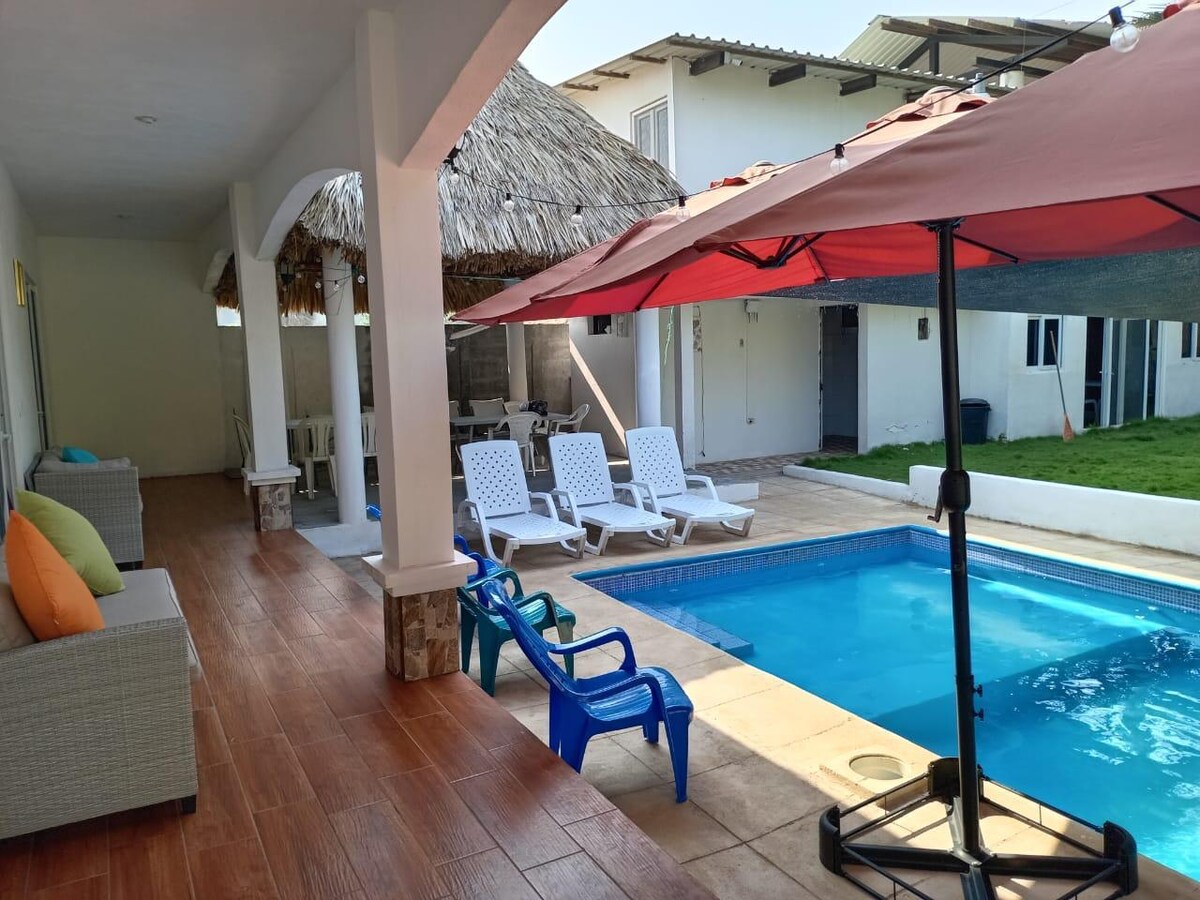 Casa sulla spiaggia fronte mare, completamente privata. La casa ha l'acqua dolce, è stata fatta una cisterna per questo scopo, e la piscina è di acqua salata. Cucina completamente attrezzata con aria condizionata. Due camere con aria condizionata e bagno privato ciascuna. Ranch con amache, uscita pedonale sulla spiaggia, ideale per riposare, in compagnia di amici e familiari, Tranquillo e accogliente. Progettato per la privacy dei nostri ospiti. 3 parcheggi privati all'interno della proprietà.